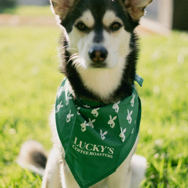 We love our fur babies and friends at Lucky's, and they have their own way to support by repping their favorite coffee shop! Bandanas for Small and Large furry friends.
